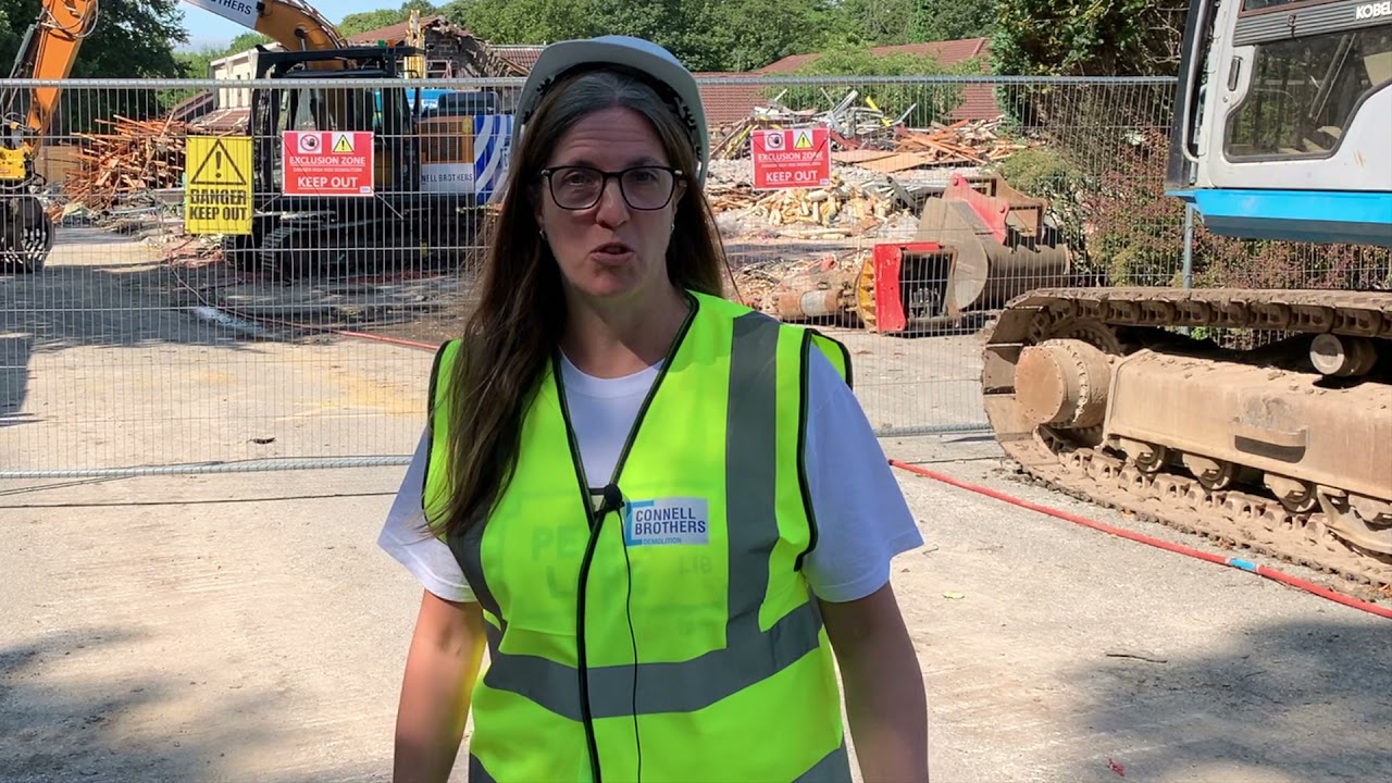 Most of the buildings currently being demolished are crushed for re-use on site as future building materials for when construction of a new 80-bed adult mental health hospital gets under way. Demolition works resume in January and the site clearance is due for completion in February 2022, with construction of the new hospital due to start later that year.